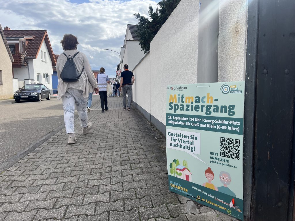 As part of her ongoing research in the project “Technonatural mediations of urban airs“, Malve Jacobsen conducted fieldwork in Griesheim, a town near Darmstadt, to explore how residents sense and perceive urban air quality and heat. The visit was combined with the local Climate Action Day (Klima-Aktionstag) on September 13, an event focused on urban development, structural measures, and public engagement. Malve’s research combined a survey and informal conversations with residents, as well as participating in a guided walk through the planned “Klimaquartier“—a living lab set to begin in 2026. The city government aims to address both measures on climate protection (e.g. energy efficiency, emission reduction) and climate adaptation (e.g. urban greening, heat mitigation). Citizen participation is central to the project’s realization. Malve will provide scientific guidance and continue her empirical research in the course of the living lab.